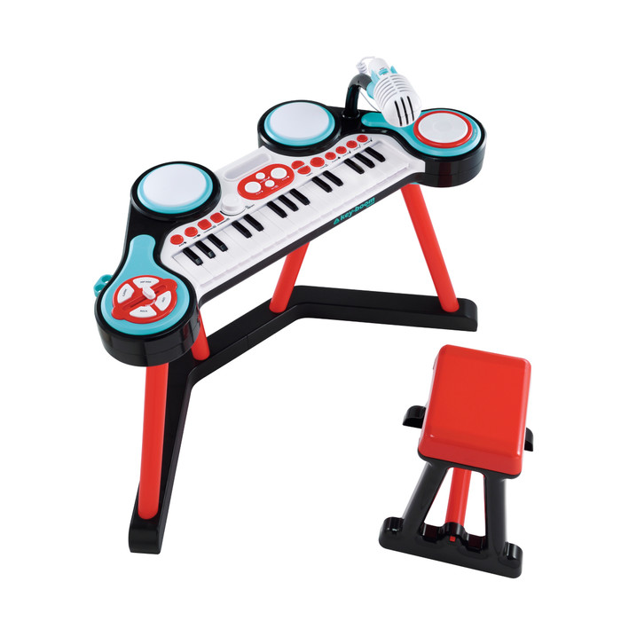 – Menampilkan 2 suara binatang, 6 lagu demo, 6 lagu pembelajaran, 2 suara drum, 4 ritme, mode pembelajaran: keyboard dan drum, stasiun dok pemutar musik, rekam dan putar, disk mixer, tremolo, mikrofon yang dapat dilepas, stik drum, dan kontrol volume